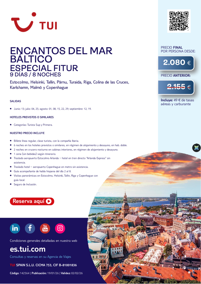 Especial Fitur. Encantos del Mar Báltico. 9 días / 8 noches. Salidas de JUN a SEP desde 2.080 €