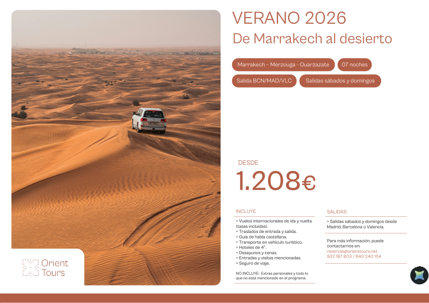 VERANO 2026 - De Marrakech al desierto 07 noches con vuelos incluidos salidas sábados y domingos desde 1.208€